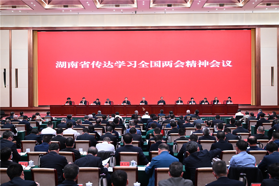 3月14日下午,湖南省传达学习全国两会精神会议在长沙召开。省委书记沈晓明出席会议并强调,要深入学习贯彻全国两会精神特别是习近平总书记两会期间发表的系列重要讲话精神,紧紧抓住高质量发展这个社会主义现代化国家建设的首要任务,以一往无前的奋斗姿态、只争朝夕的精神状态推动全国两会精神落地生根,推动中国式现代化新湖南建设迈出新步伐、展现新气象。省委副书记、省长毛伟明主持会议。