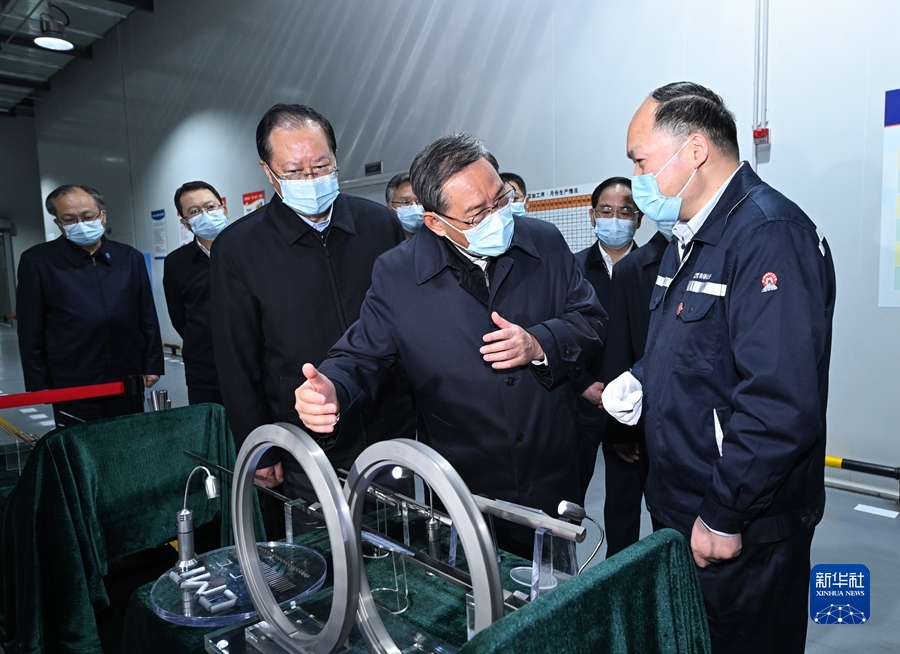 3月21日至22日,中共中央政治局常委、国务院总理李强在湖南调研并主持召开先进制造业发展座谈会。这是3月21日,李强在株洲硬质合金集团调研。新华社记者 饶爱民 摄